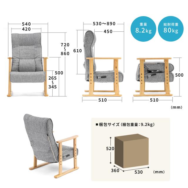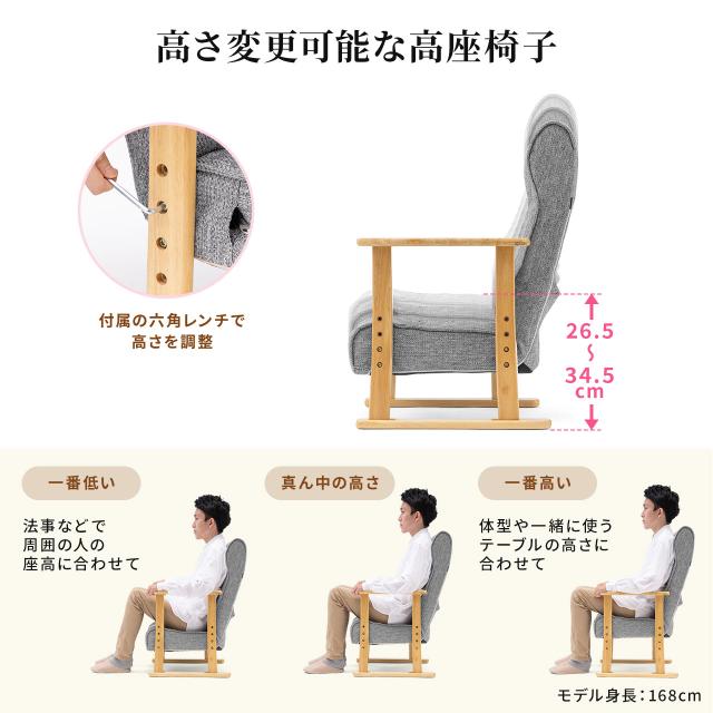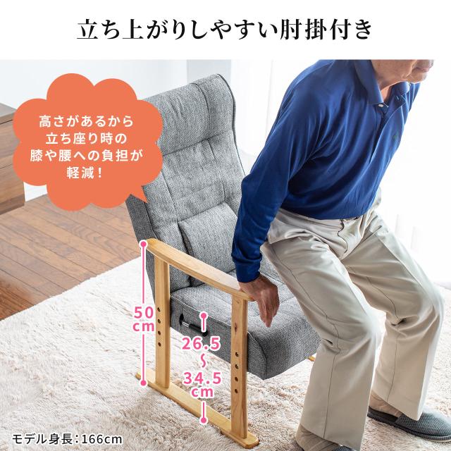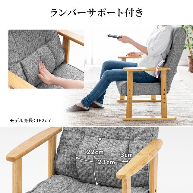 高座椅子 肘かけ付き レバー式 8段階 リクライニング [150-SNCH035]
