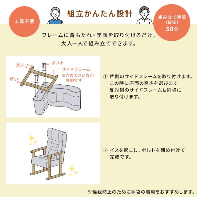 ■仕様:高さ3段階変更、背もたれ8段階角度調整、木製フレーム