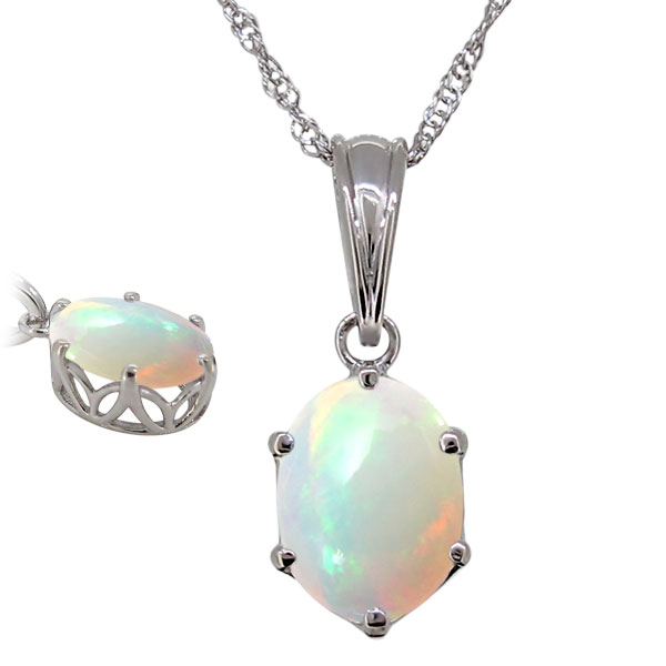 レディース ネックレス 大粒 10月誕生石 オパール 一粒ペンダント プラチナ 大ぶり