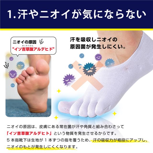 5本指靴下は1本ずつ指を覆うため、汗の吸収力が格段にアップ!