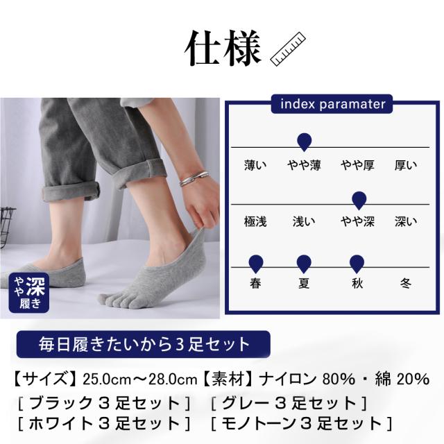 [3足セット]5本指 ソックス メンズ ショート 靴下 脱げない フットカバー 対策 スポーツ ビジネス 通勤 通学 スニーカー おすすめ おしゃれ カジュアル シンプル 綿 コットン 春 夏 秋 リノウルフット リノウル