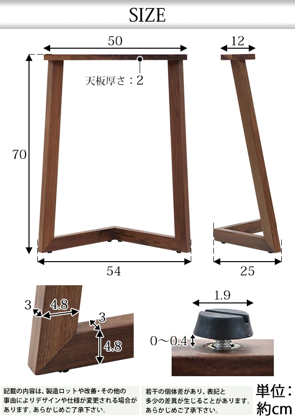 テーブル デスク 脚 脚のみ 2本セット パーツ DIY ブラックウォールナット材 W54×D25×H70cm ブラックウォールナット V字 高級 木製 木材 天然木 無垢材 アジャスター付き クルミ ダイニングテーブル おしゃれ レッグ テーブル脚 2脚 自作 家具 lvbkwaleg