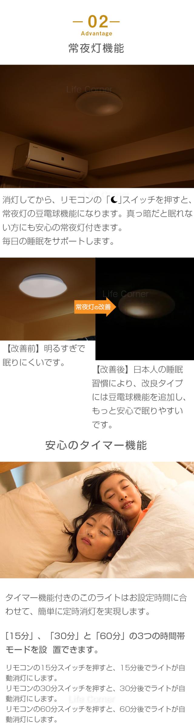 ※ 常夜灯の明るさは全灯の2%相当です。人によって明るさに感知が違いますので、明る過ぎるまたは暗すぎると感じされる場合もありますので、あらかじめご了承ください。