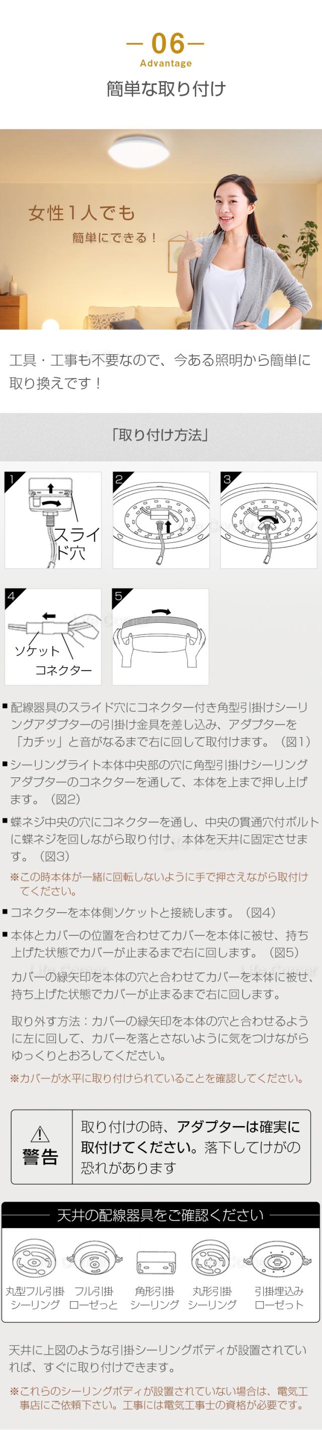 8.工事が不要で、今お使いのシーリングライトから取り付けアダプターなしで付け替えが簡単にできます。