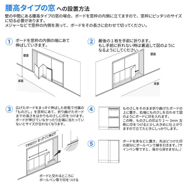窓枠に立てるだけ設置は簡単、窓枠のサイズぴったりにカットして、立てかけるだけ。