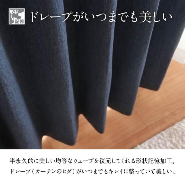 カーテン2枚組 ドレープカーテン 北欧1級遮光 形状記憶 遮熱 保温「ヴェント」幅100cm×丈10サイズ 2枚組 無地 シンプル 遮光カーテン 新生活