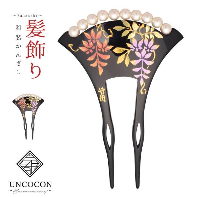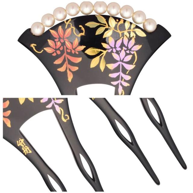 髪飾り 留袖 振袖 婚礼 結婚式 袴 黒 べっこう調 パール フォーマル パール 二本差し 日本製 高級 蒔絵 簪 かんざし