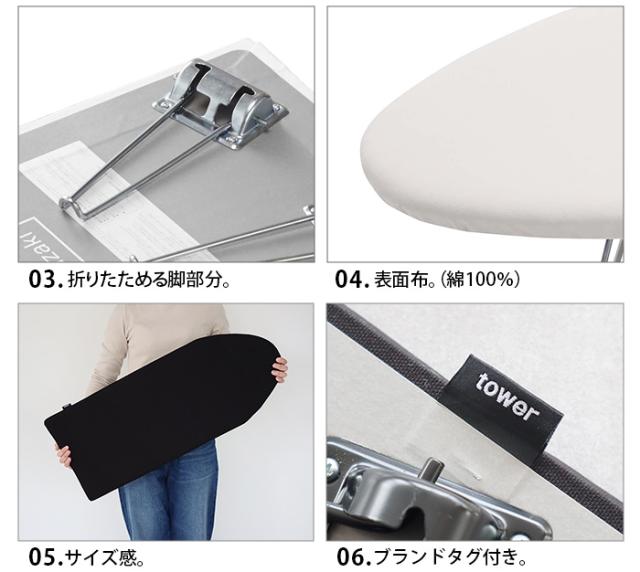 タワー 舟型アイロン台 tower IRONING BOARD アイロン台 山崎実業 コンパクト 舟型 シンプル スタイリッシュ モノトーン 脚付き 折り畳み式 ホワイト ブラック アイロン掛けしやすい シャツ スラックス【12時迄のご注文は当日発送★P5倍】