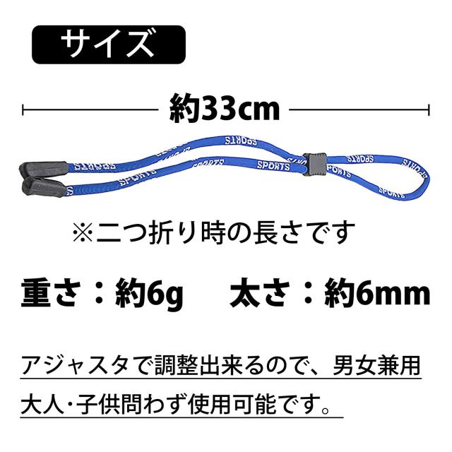 - 仕事中や運動時に眼鏡が落ちる心配が無くて、ずっと使わせて頂いています。長さ調整も簡単でいいですね。