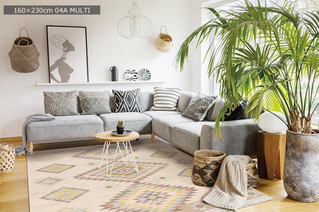 トレンドのキリム柄をペールトーン調に織りあげた新感覚のラグです。
