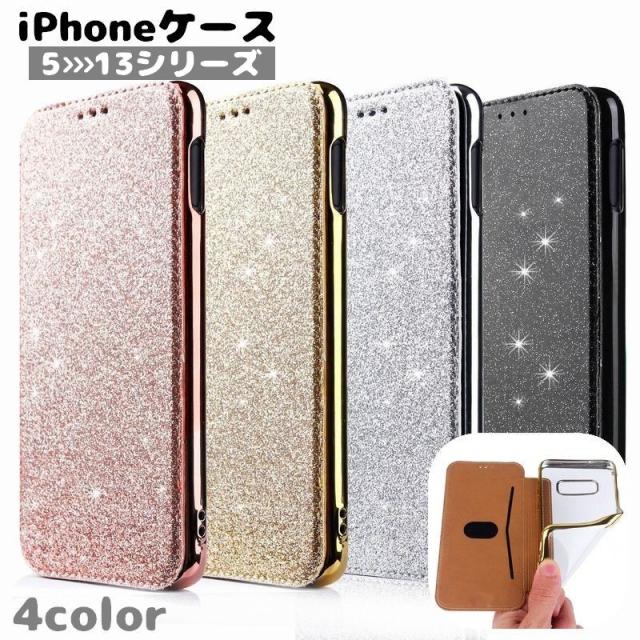 iPhoneケース スマホケース 手帳型 二つ折り スマホカバー キラキラ ラメ メタリックカラー カードポケット付き ICカー
