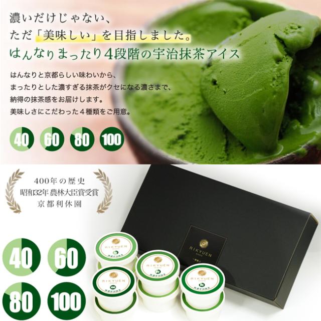 はんなりと京都らしい味わいから、まったりとした濃すぎる抹茶がクセになる濃さまで、納得の抹茶感をお届けします。美味しさにこだわった4つの濃さが味わえる宇治抹茶アイスギフト。高級感のあるギフトパッケージでお届けします。