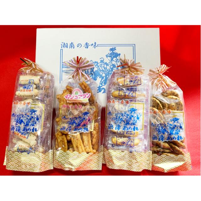 甘いあられからスパイシーなあられ、おやつ、おつまみに等々に好適なあられのバラエティBOXになります。