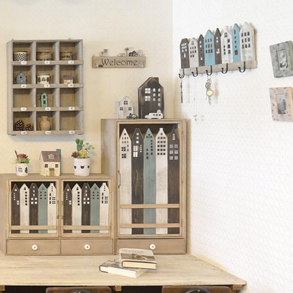 家が立ち並ぶデザインが素敵なフックです。ドライフラワーを飾ったり、帽子や鍵のハンギングなど、壁面に一つあると便利です。