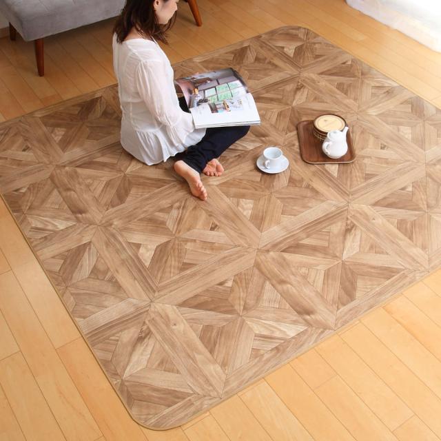 ラグ 182×260cm ラグマット パーケット 既製サイズ ( 撥水 拭ける 木目 ダイニングラグマット フロアマット 撥水加工 抗菌 防カビ 防水 防炎 日本製 リビング ダイニング 子ども部屋 耐久性 )