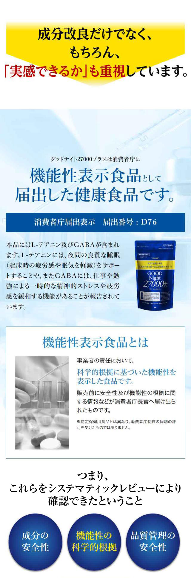 機能性表示食品 finebase グッドナイト27000+ 90粒入り 夜間の良質な睡眠をサポート! 休息サプリ 睡眠 テアニン ストレス 疲労 サプリ サプリメント【送料無料】