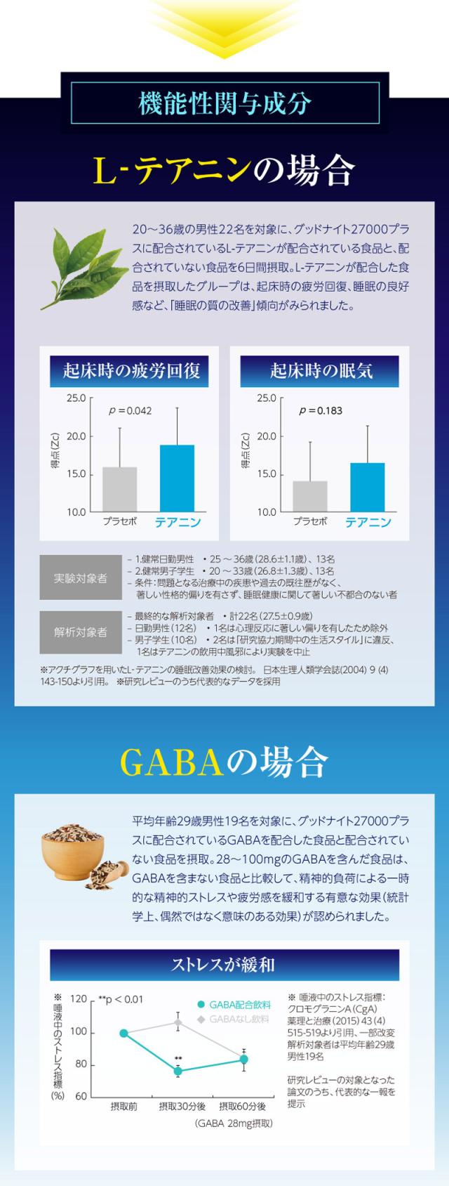| 機能性関与成分 | L-テアニン 200mg、GABA 28mg |