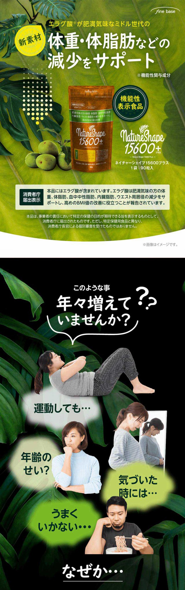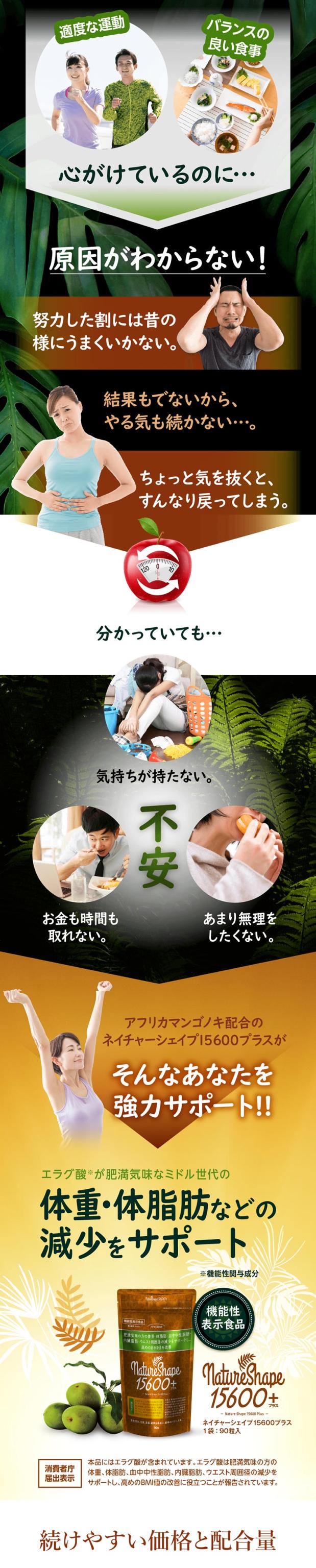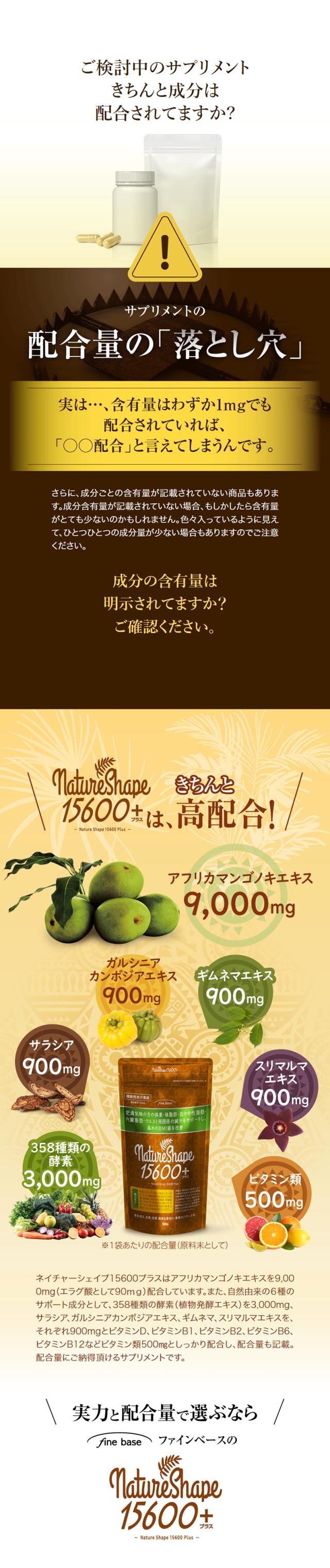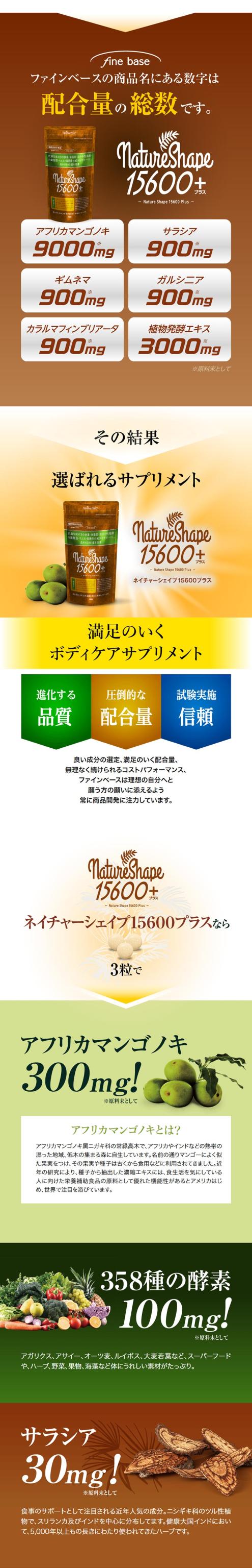finebase ネイチャーシェイプ15600プラス(90粒入り) エラグ酸 酵素 サプリ サプリメント アフリカマンゴノキ由来エラグ酸 【送料無料】 フォルスコリ ギムネマ サラシア