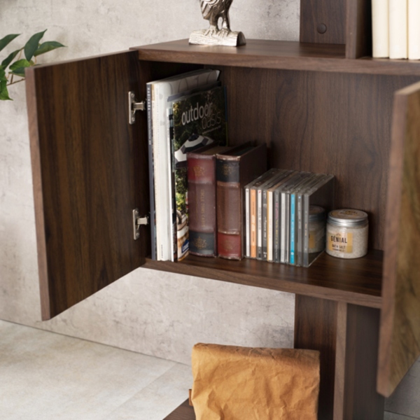 扉付きのスペースには、散らかりやすい小物などをまとめて収納して頂く事ができます。扉で中身が見えないので、お部屋の印象がスッキリします。