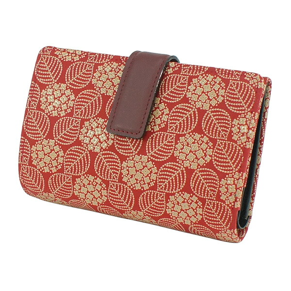 印伝 甲州印伝 印傳屋 上原勇七 財布 二つ折り財布 2213 あじさい 紫陽花 赤地×白漆 鹿革 本革 レザー 花柄 ブランド 冬ギフト バレンタイン 贈り物 YM02