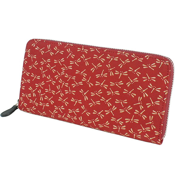 印伝 甲州印伝 印傳屋 上原勇七 財布 長財布 束入れ 2317 とんぼ 赤地×白漆 鹿革 本革 レザー 和柄 ブランド 冬物 冬ギフト 福財布 贈り物 YM01