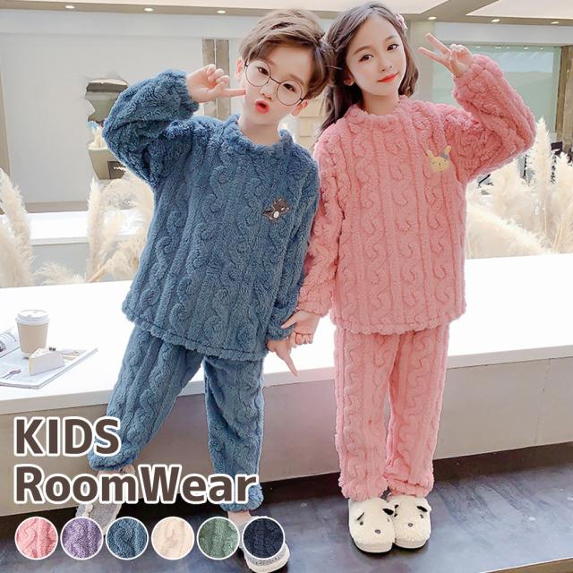 春新作 パジャマ キッズ 女の子 男の子 長袖 冬 子供 トップス ボトムス パンツ 2点セット セットアップ ルームウェア 部屋着 もこもこ 110 120 130 140 150 160 寝巻き ウエストゴム 袖口 足首 ゴム ポリエステル100% 伸縮性 ストレッチ 厚手 無地