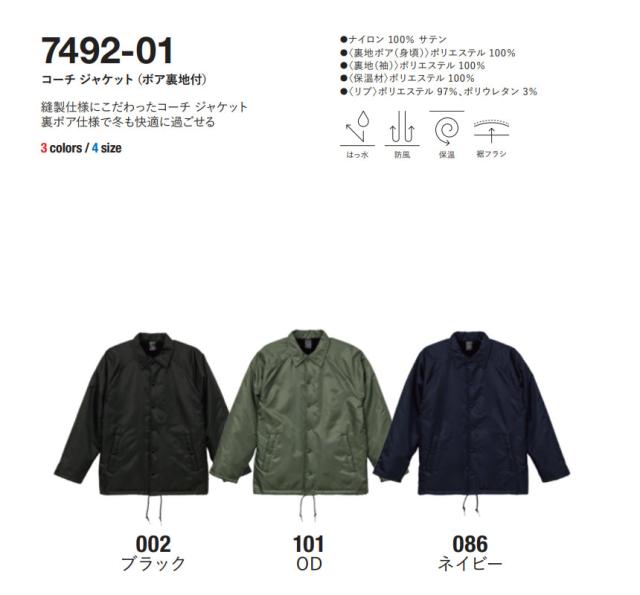 コーチジャケット ジャケット メンズ 無地 UnitedAthle ユナイテッドアスレ ボア裏地付 アウター【7492-01】送料無料