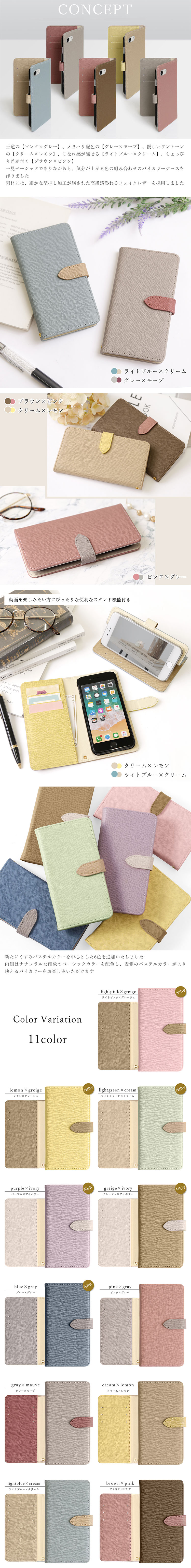 色の組み合わせがおしゃれな表裏バイカラーのスマホケース全11色!
