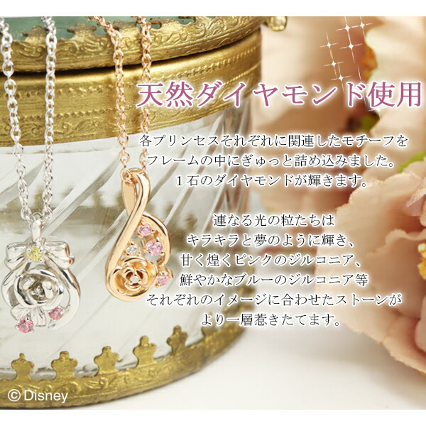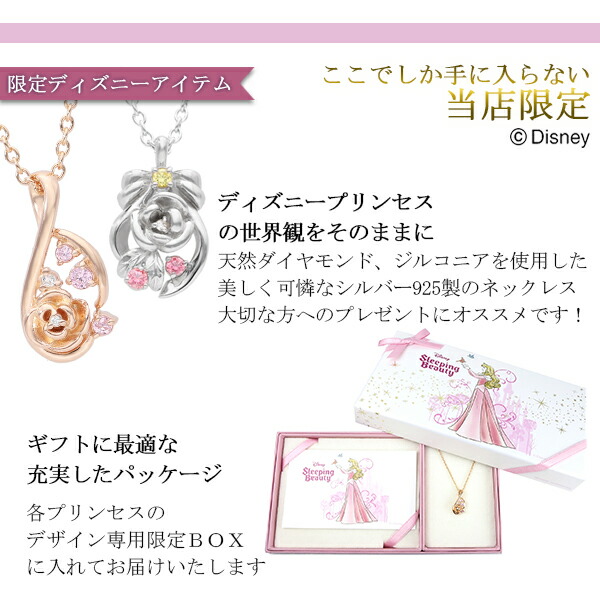 当店限定 選べる7種類 ディズニー プリンセス ネックレス レディース 公式 Disney 眠れる森の美女 シンデレラ 美女と野獣 リトルマーメイド アラジン