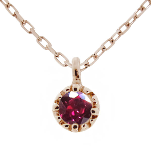 レディース ネックレス 華奢 シンプル 一粒 ネックレス ルビー 小さめ k10 ゴールド ピンク イエロー