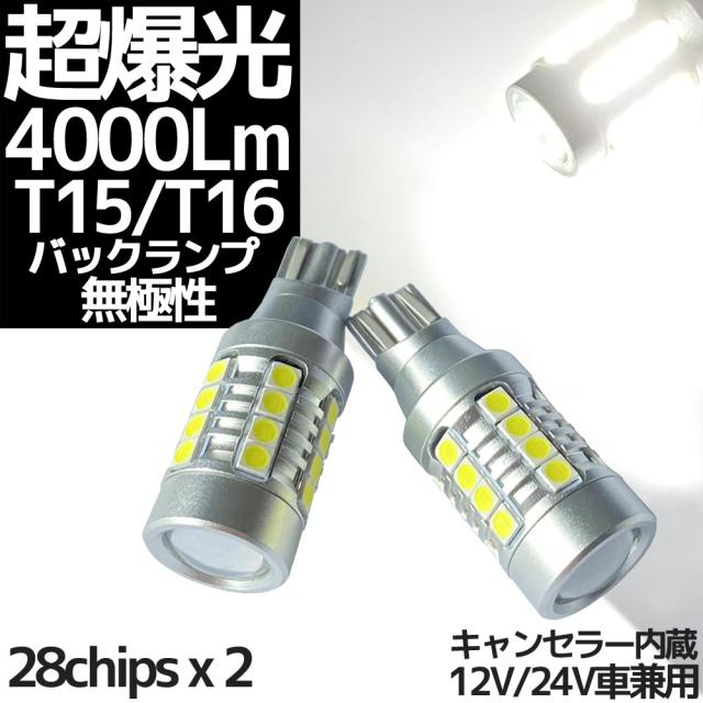 超爆光 4000ルーメン T15 T16 兼用 LED バックランプ ホワイト発光 無極性 警告灯キャンセラー内蔵 2個セット リバースランプ agesugi_ssp