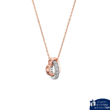 サークルとオープンハートが組み合うダブルループデザインのネックレス。きらめきを添えたコンビカラーがスタイリッシュな印象に。チェーンの通し方によって変えられるフォルムでコーディネートを楽しんで。