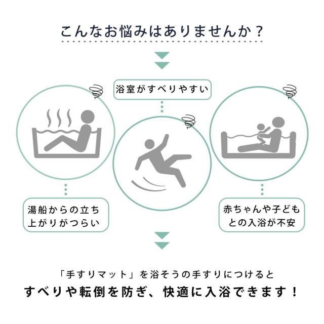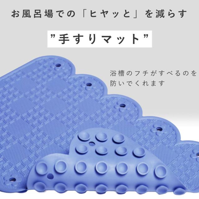 浴槽のフチなど、自然と手がいく場所に取り付けてすべりを防ぐ手すりマットです。マットを取り付けることで、浴槽に入る時や浴槽から出る時の手スベリを防いでくれます。