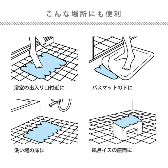 ※浴そうの底面に凹凸加工がある場合、凹凸部がマットの吸盤より大きく、表面が平滑な仕上がりであれば使用できますが、吸盤より小さな凹凸や表面がザラザラした素材であると吸盤が吸着しにくく、ご使用いただけない場合があります。