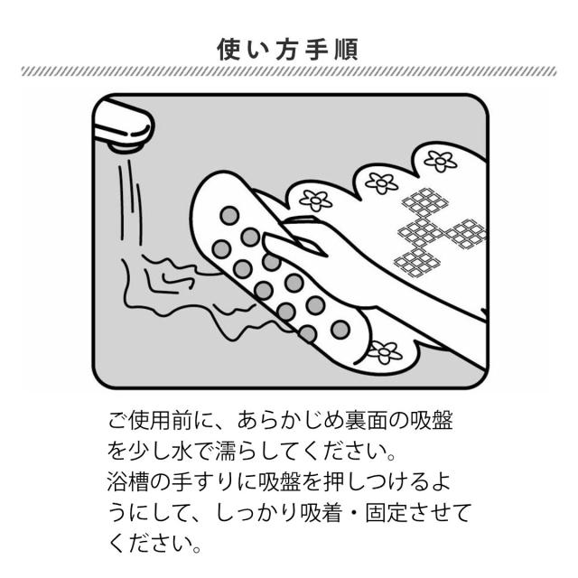 ※木製の浴そうや表面がザラザラしている面には吸盤が吸着しにくく、使用できない場合があります。