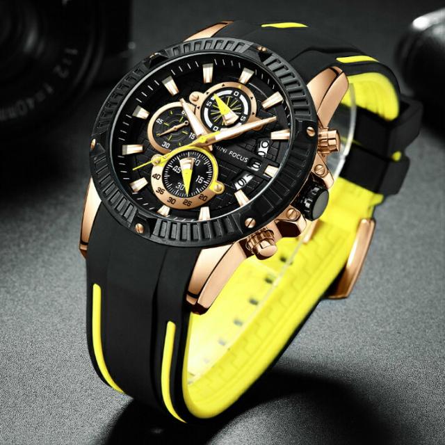 【送料無料・税込み】MINI FOCUS TB-9103-9108 腕時計 お洒落 クオーツ メンズ ラバー 高級 クール 流行 カレンダー ストップウォッチ Quartz watches 人気 売れてる ランキング