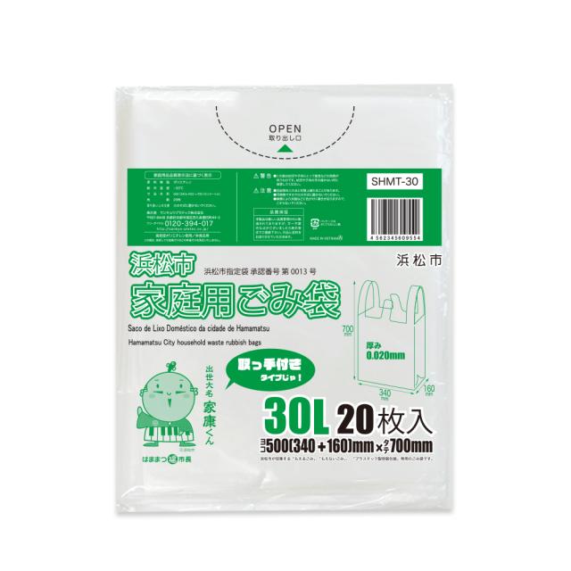 【バラ販売】SHMT-30bara 浜松市指定家庭用 ごみ袋 取手付き 30リットル 0.020mm厚 半透明 20枚/ ゴミ袋 ごみ袋