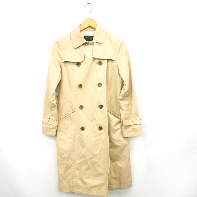 【中古】リズムオブライフ RHYTHM OF LIFE トレンチコート 無地 ベルト シンプル ロング 長袖 コットン 綿 S ベージュ