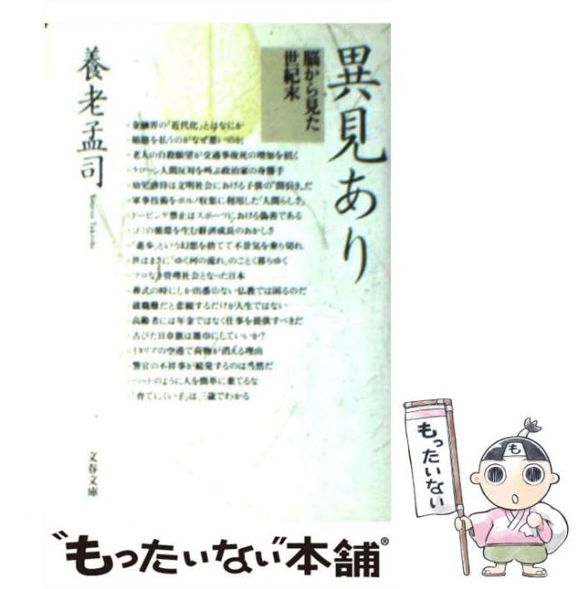商品名:【中古】 異見あり 脳から見た世紀末 (文春文庫) / 養老 孟司 / 文藝春秋 [文庫]【メール便送料無料】
