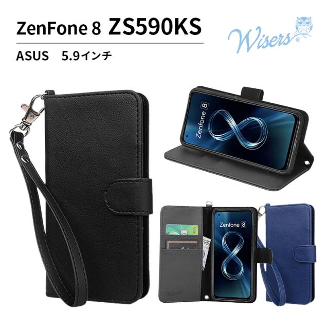 wisers ストラップ2種付 スマホケース ZenFone8 ZS590KS ASUS 5.9インチスマートフォン スマホ 手帳型 ケース カバー 全2色