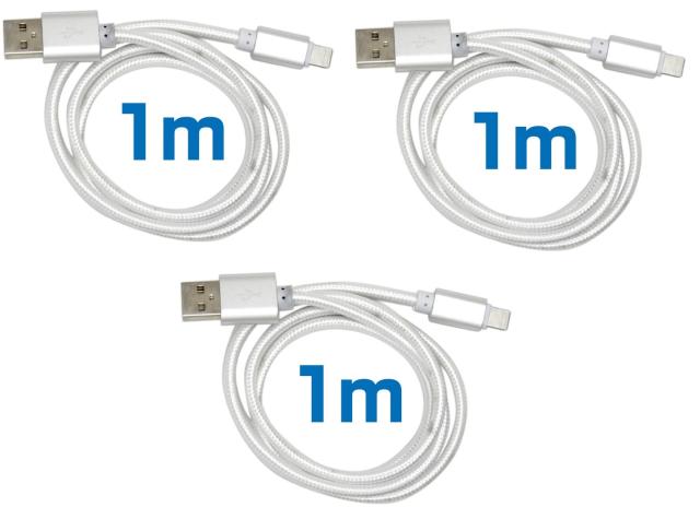 高耐久 ナイロン織り iPhone充電ケーブル 1m 3本セット USB/ライトニングケーブル