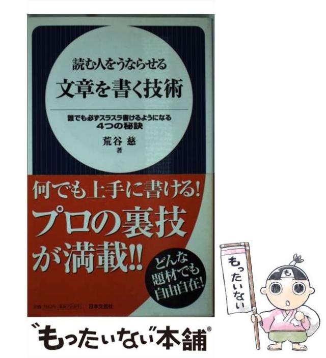 商品名:【中古】 読む人をうならせる文章を書く技術 誰でも必ずスラスラ書けるようになる4つの秘訣 (日文新書) / 荒谷慈、荒谷 めぐみ / 日本文芸社 [新書]【メール便送料無料】