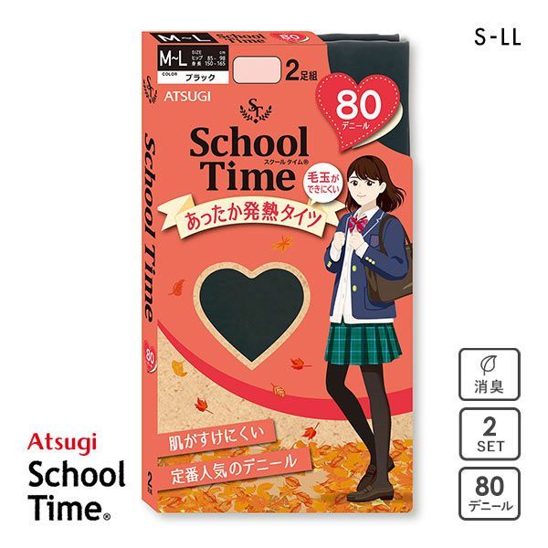アツギ ATSUGI スクールタイム タイツ 80デニール 2足組 キッズ ジュニア 発熱 あったか