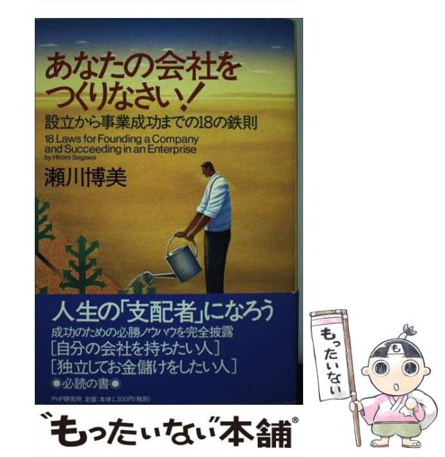 商品名:【中古】 あなたの会社をつくりなさい! 設立から事業成功までの18の鉄則 / 瀬川 博美 / PHP研究所 [単行本]【メール便送料無料】