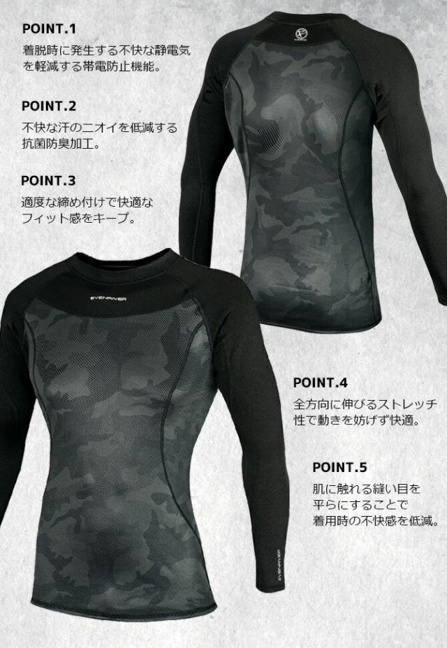 ホットコンプレッション ヒートボディーネオ クルーネック EVENRIVER(イーブンリバー) GTZ-16 メンズ 長袖 帯電防止 抗菌防臭加工 フリーストレッチ 裏起毛 通気性 保温 作業服