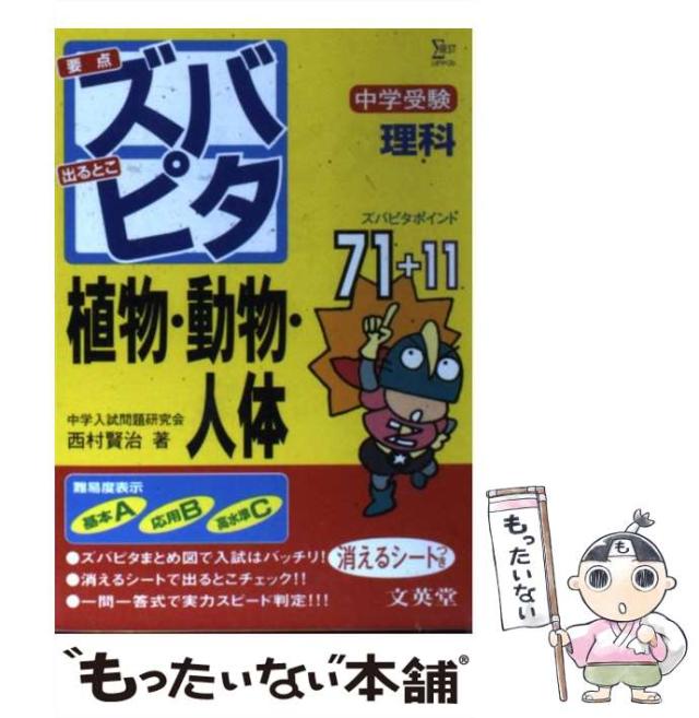 商品名:【中古】 中学受験ズバピタ理科植物・動物・人体 / 西村 賢治 / 文英堂 [文庫]【メール便送料無料】