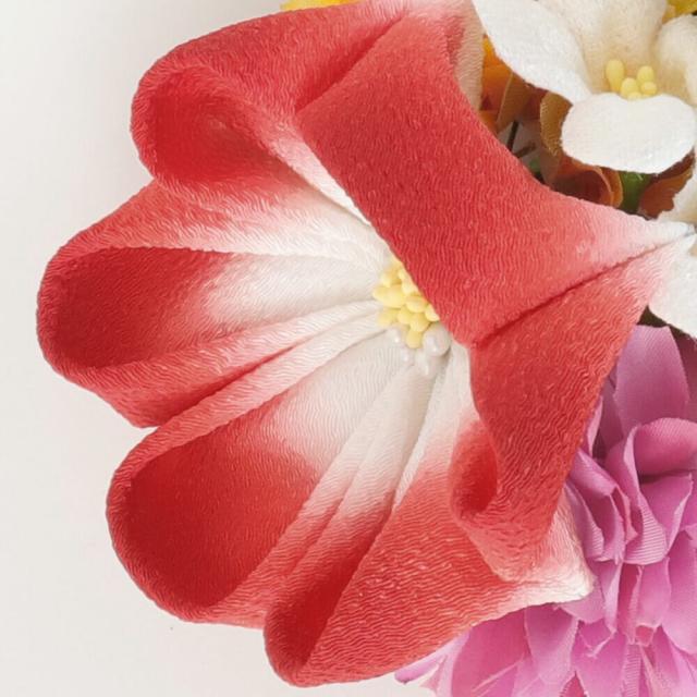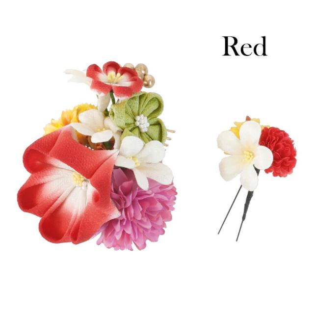 髪飾り 成人式 赤 レッド 前撮 花かんざし コーム Uピン 髪留め 卒業式 振袖り 着物 袴 日本製 ちりめん つまみ細工