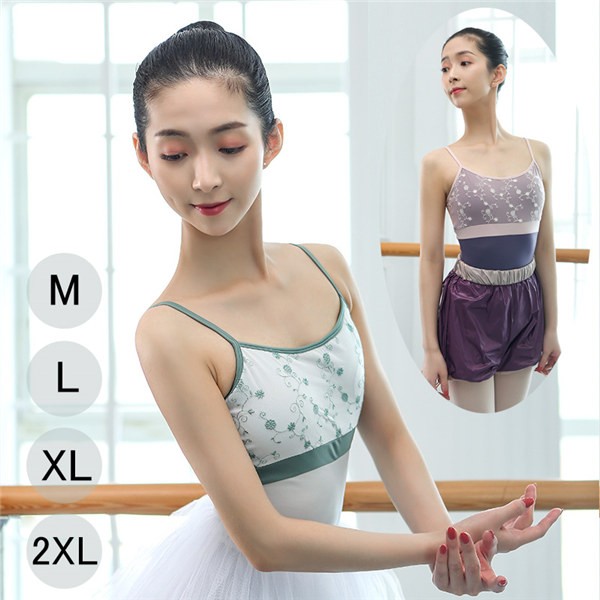 バレエレオタード 肩出し キャミソール 大人用 バレエ用レオタード バレエ衣装 練習衣装 演出用 訓練服 ダンス服 レッスン着 女性 韓国 夏 春 青 グリーン 大人 お洒落 バレエ衣装 新体操 レッスン ステージ dm488g4g4c0