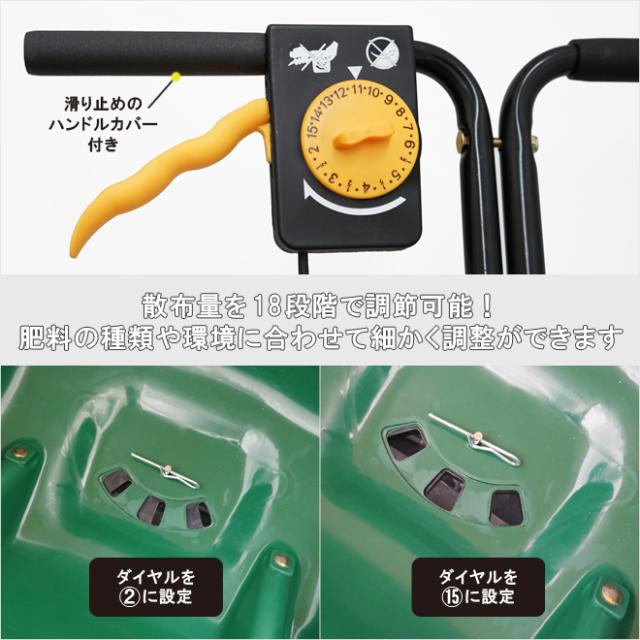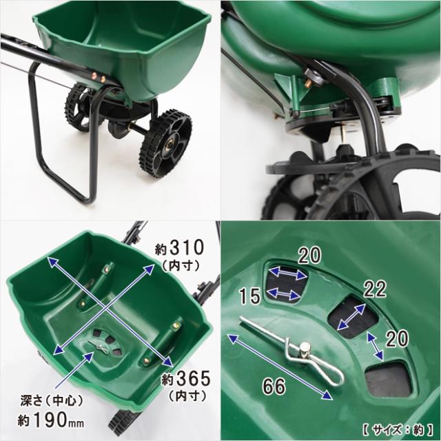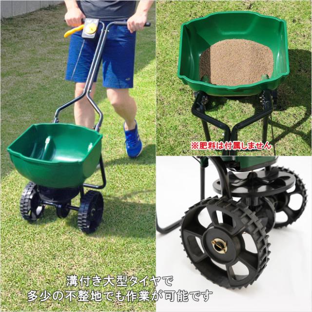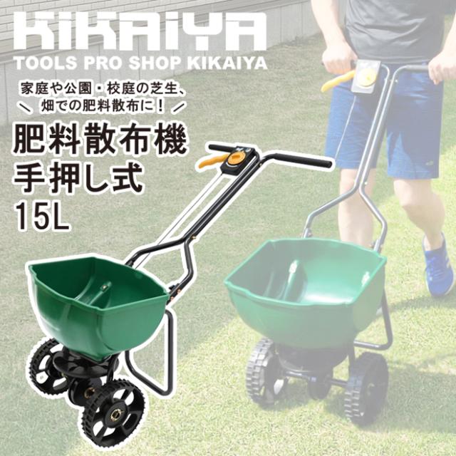 肥料散布機 手押し式 容量15L 散布器 ロータリー式 スプレッダー ブロードキャスター キャスター付 コンパクト 小型 軽量 大型タイヤ 肥料まき機 KIKAIYA