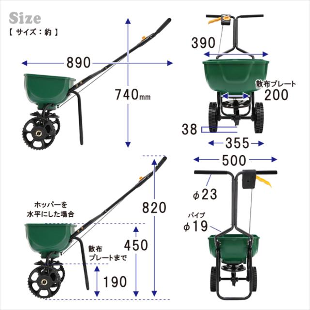 家庭や公園・校庭の芝生、畑での肥料散布に! ●押し進むだけで肥料を均一に散布できる、手押し式散布機です ●短時間で広範囲に散布できるので、種子や融雪剤などの散布にも使えます ●ご家庭などで使いやすい15Lの小型タイプ ●種まきから肥料散布まで、お庭や少し広い場所などの芝生管理に重宝します ●車輪付きだから作業が楽!背負う必要がないので、腰などの負担を軽くします ●18段階で散布量を細かく調整できます ●タイヤを回すとホッパー下の散布プレートが回転します 押し進みながらレバーを引くとホッパー内の投下口が開き、落下した肥料を ばら撒きます ●タイヤと一緒にホッパー底のピンが回転する事で肥料が固まらず、スムーズな散布が 行えます ●溝付き大型タイヤなので、あぜ道や畑など多少の不整地でも作業が可能です ●ハンドルの組立てはお客様ご自身でお願いします(10分程度) ※肥料は付属しません ※散布は一方向のみでなく、縦方向/横方向など複数回に分けて散布を行うことで、 より均一に散布できます ※散布量/散布範囲は肥料の種類や投下口の開度、走行スピードなどによって変わります 複数回テスト散布をし、確認と調整を行って下さい 品番:TC2115 |